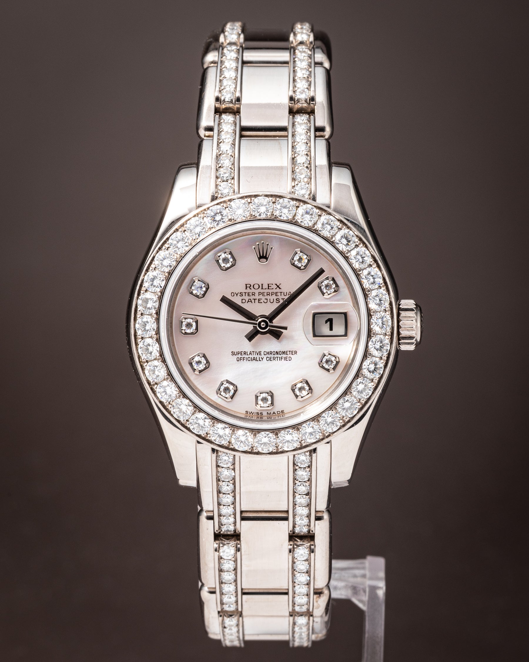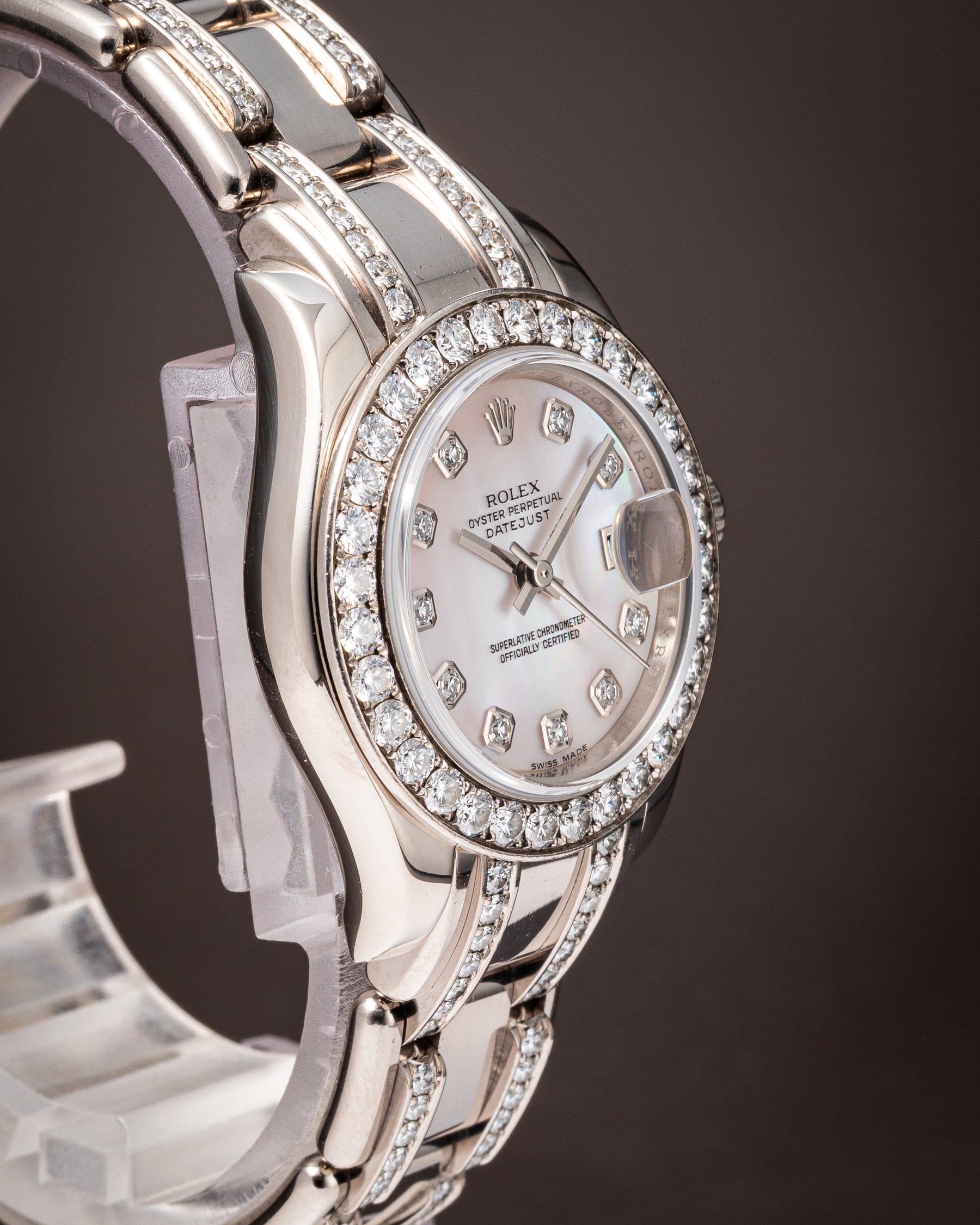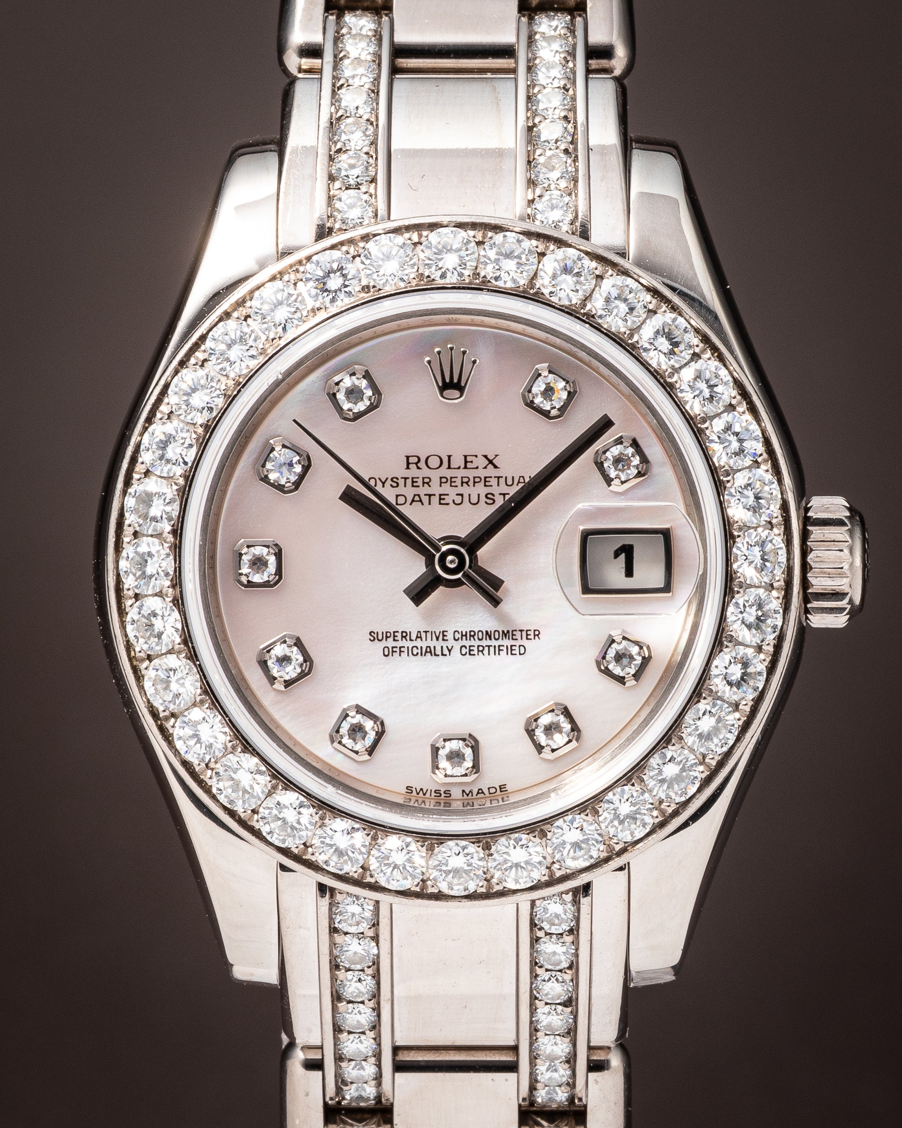 Dial: Factory Mother-of-Pearl with Diamond Hour Markers