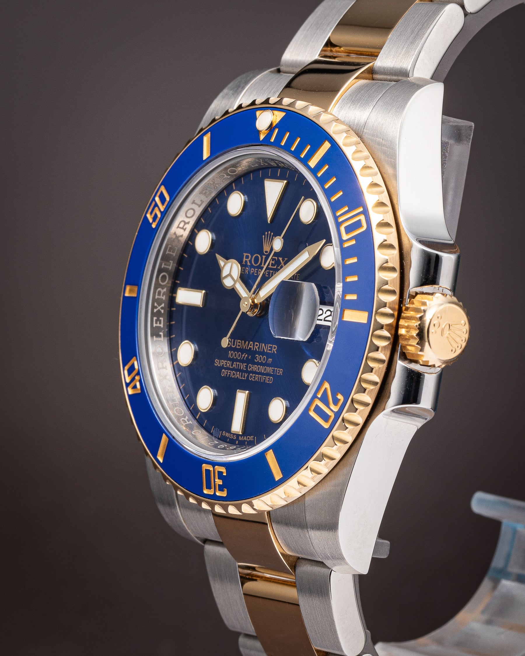 Bezel: 18k Yellow Gold, Rotatable, Blue Ceramic Insert